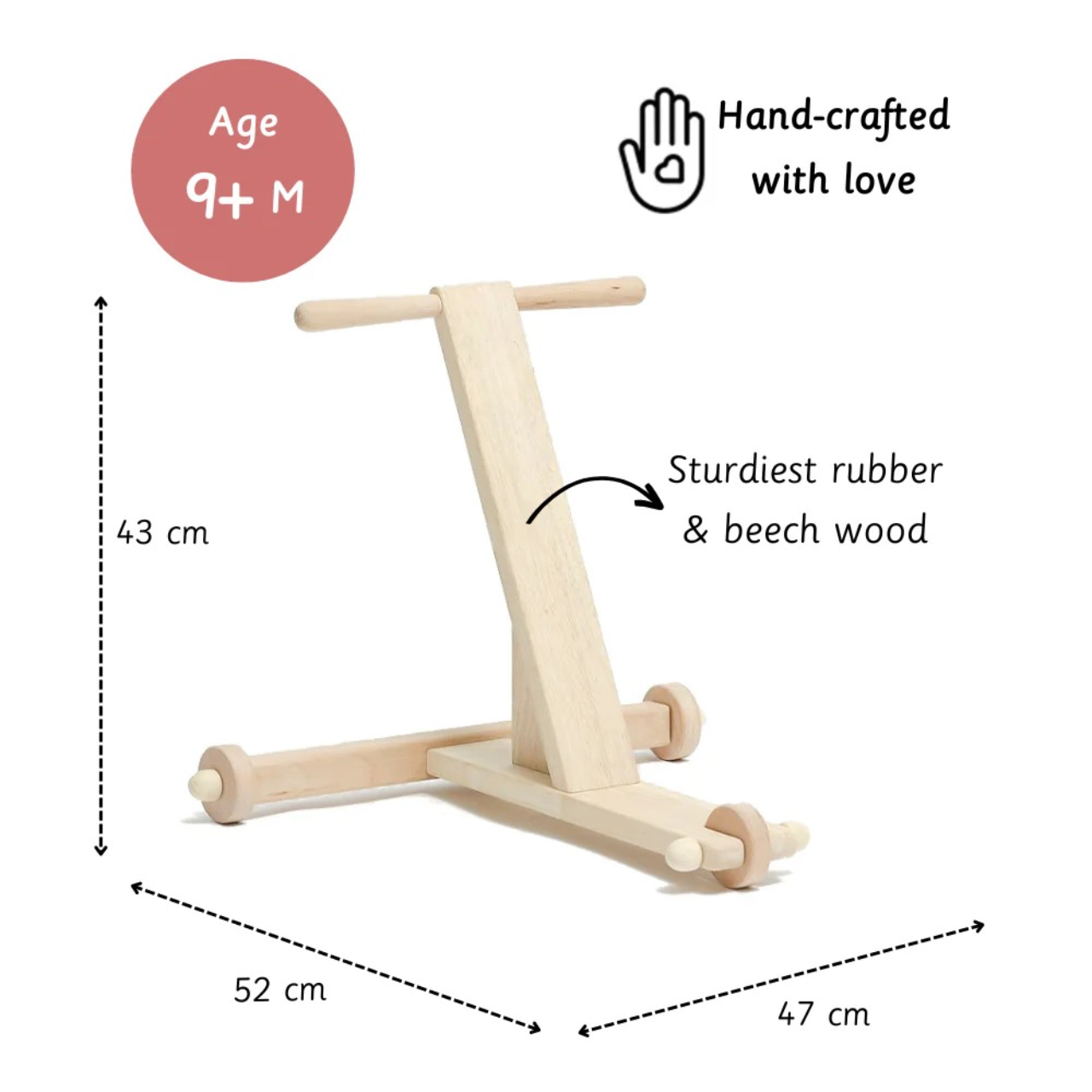 This strong and sturdy walking wagon is designed to withhold your baby's weight and pressure. Our wheels come with traction making sure the wheels don't move out of control.